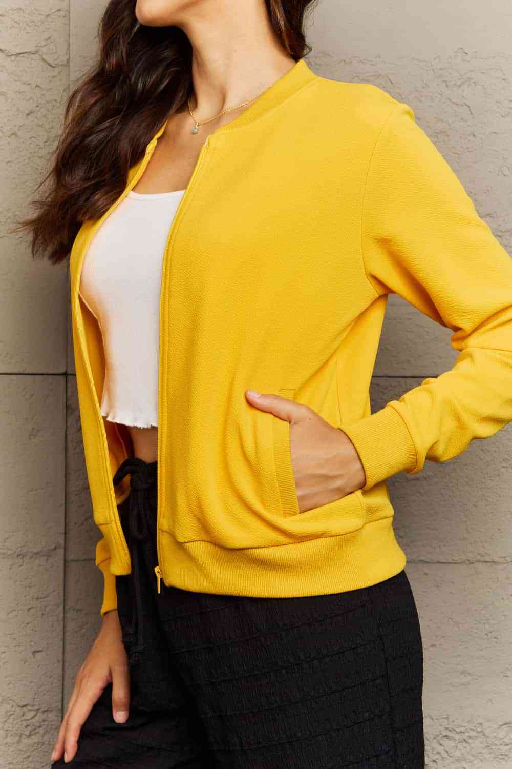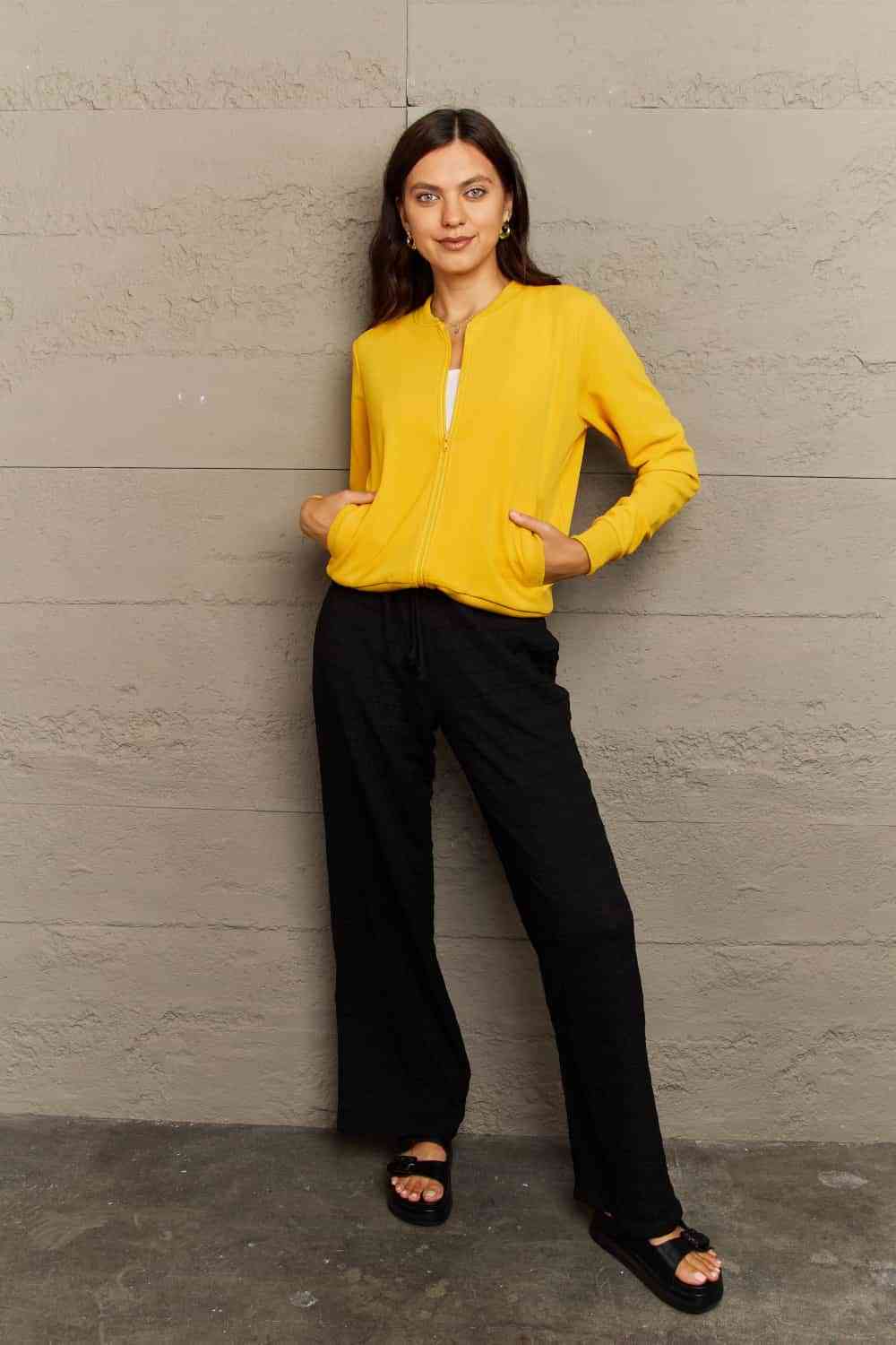 M: bust 42 in, length 23 in, sleeve length 24.3 in