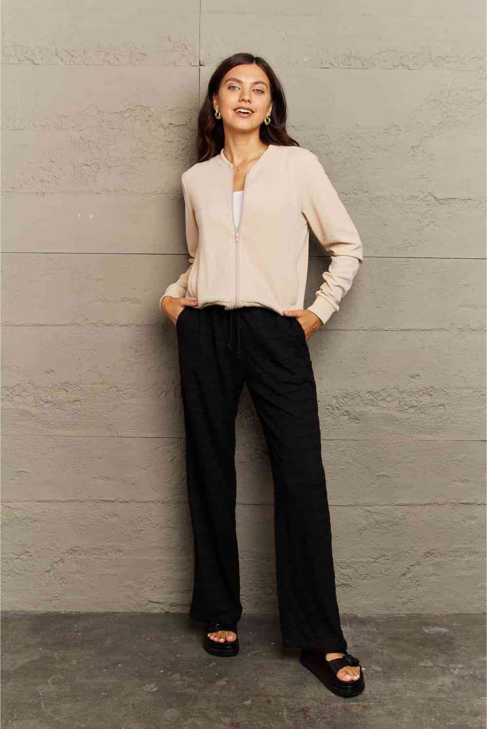 Ninexis Full Size Plaid Round Neck Long Sleeve Jacket